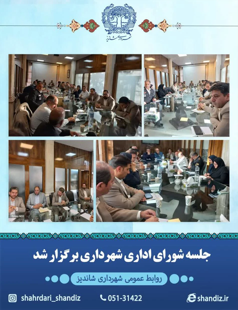 به گزارش روابط عمومی شهرداری شاندیز ظهر سهشنبه مورخ 10 مهر ماه جلسه شورای اداری شهرداری برگزار گردید.